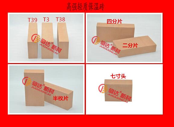 一般常用的為標準磚T-3(230*114*65mm),當然可根據(jù)實際窯爐保溫層的砌筑尺寸進行精準設(shè)計,如:T-38、T-39、T-19、T-20、二分片、三分片、四分片等等,也不排除需要定制加工異型與特異型輕質(zhì)保溫磚。